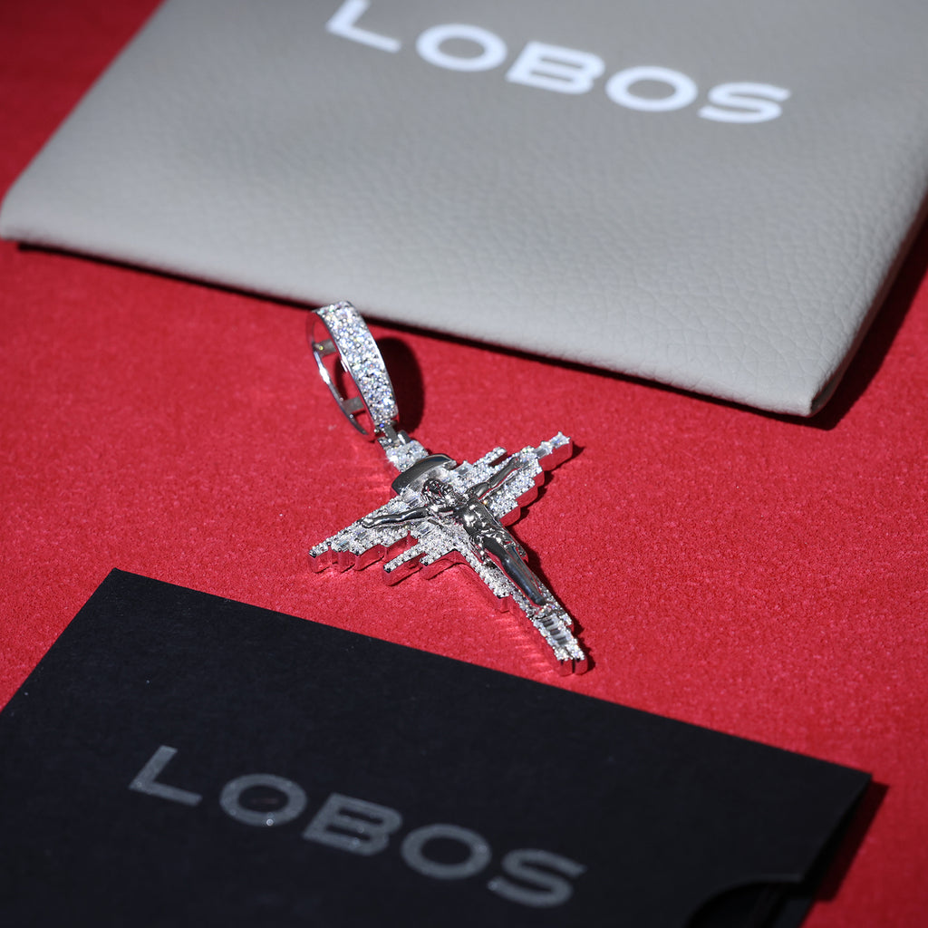 Our Moissanite Sacred Cross Pendant is made with handset stones. This masterpiece is one of our most popular pendants. Match your outfit with our diamond cross and outshine the rest of the crowd.